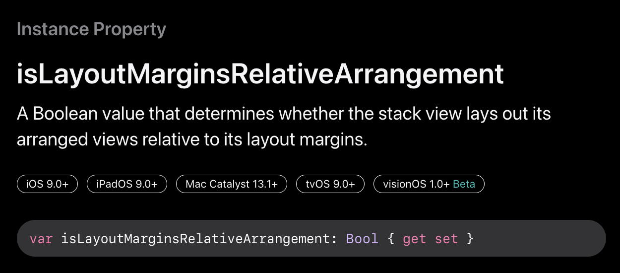 https://developer.apple.com/documentation/uikit/uistackview/1616220-islayoutmarginsrelativearrangeme