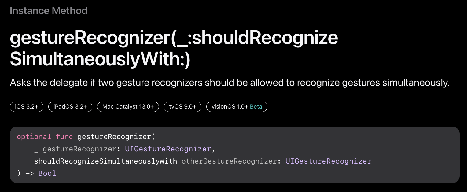 func gestureRecognizer(_ gestureRecognizer: UIGestureRecognizer, shouldRecognizeSimultaneouslyWith otherGestureRecognizer: UIGestureRecognizer) -> Bool {