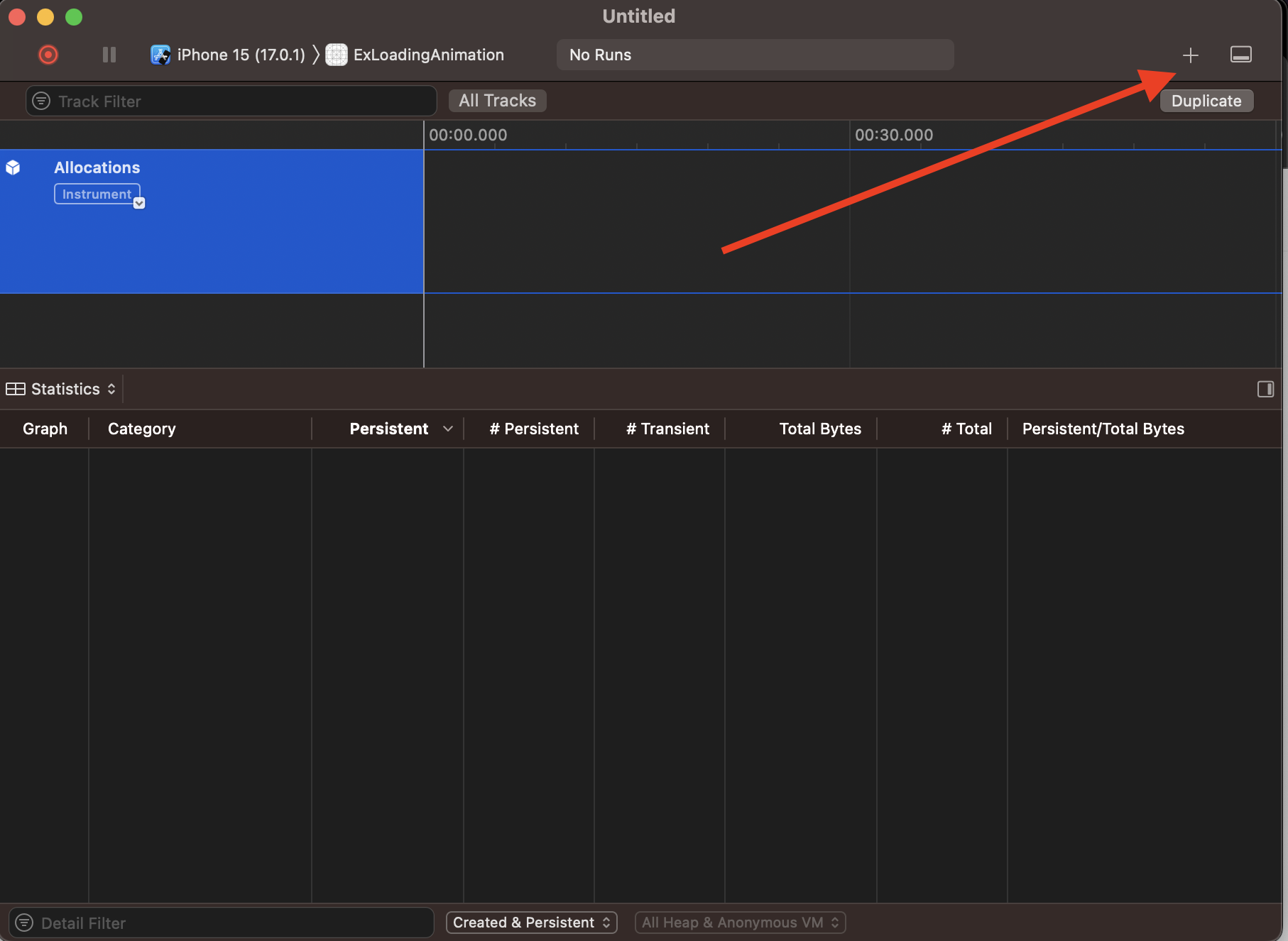 - Xcode > Instrument 실행 (단축키, cmd + I)