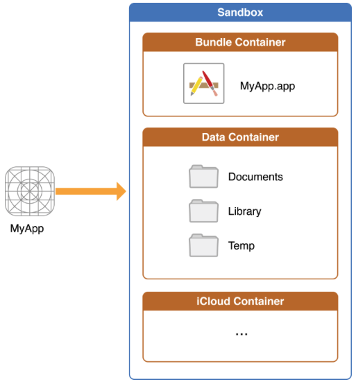 - iOS앱은 보안의 목적으로 자신이 속한 샌드반스안의 디렉토리에만 접근 가능