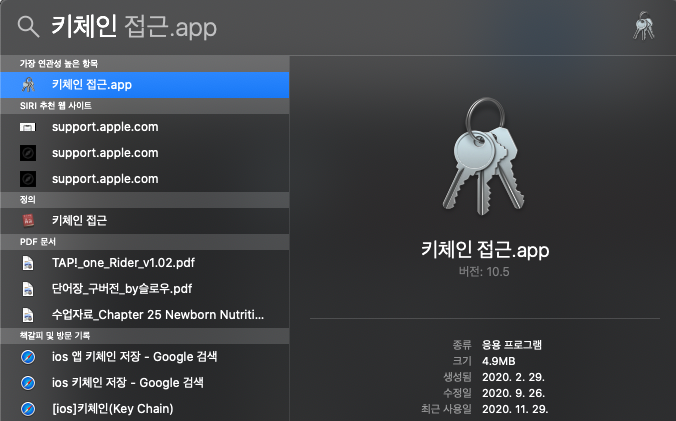 - "키체인 접근" 앱 실행