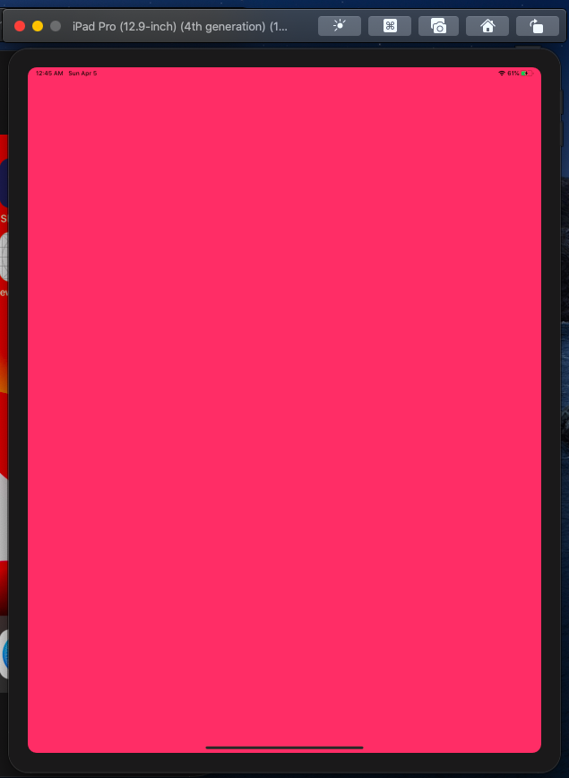 아이폰8 기준으로 View를 넣고 꽉차게 설정(분홍색)한 후 아이패드에서 실행한 결과)