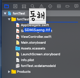 3) 프로젝트 정보창 -> Build Phases탭 -> Copy Bundle Resources에서 폰트 추가
