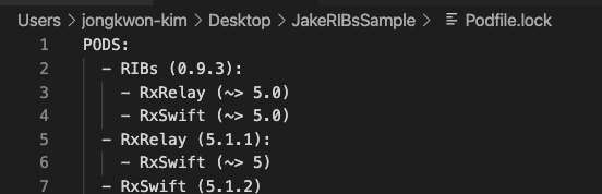 - pod 'RIBs'할 경우 RxSwift버전은 4.x버전으로 설최되므로, tag를 명시하여 RxSwift 5.x버전이 받아지도록 설정