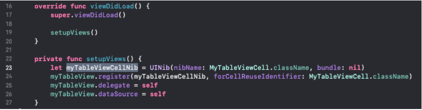 주의) Cell을 사용한다면, register() 시에 nib 파일을 넣어야함