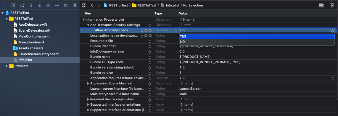 App Transport Security Settings 추가 -> 하위 탭에서 Allow Arbitrary Loads 추가 -> YES로 변경