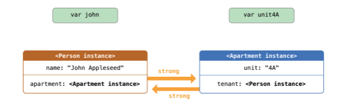 - ARC는 strong reference를 통해, 현재 사용중인 instance가 메모리 해제되지 않도록 유지