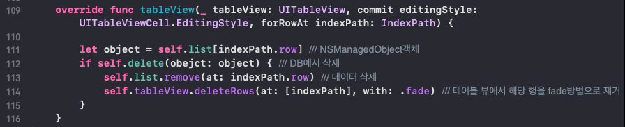 -> 모두 tableView(_:commit:forRowAt)에서 접근