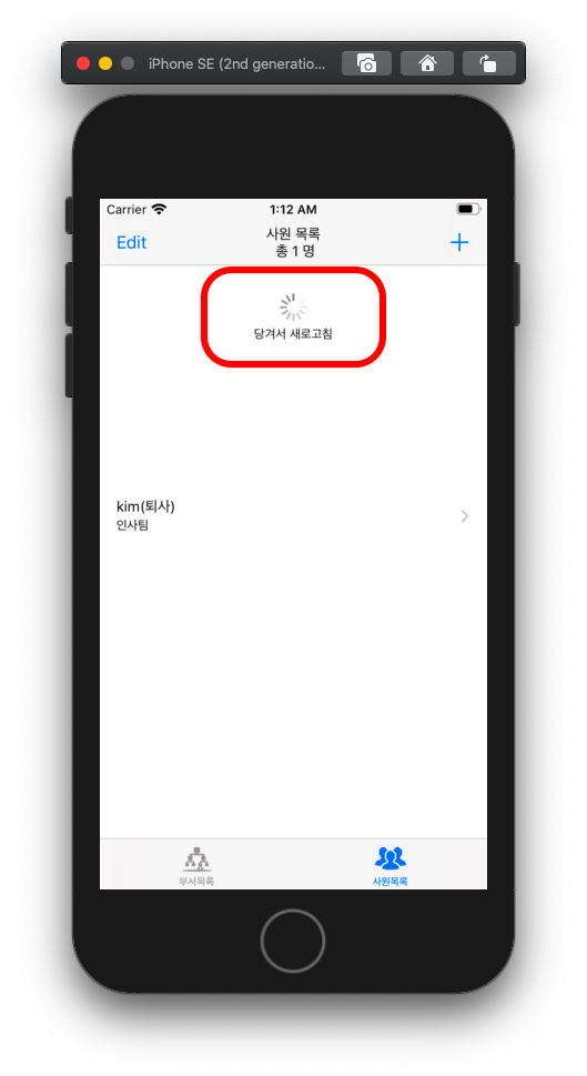 refreshControl종료, 26번라인 (해주지 않는다면, 위 실행화면에서 "당겨서 새로고침"이미지가 사라지지 않음)