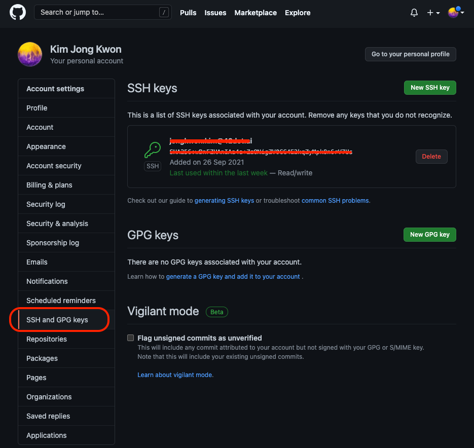 - git에 key 등록