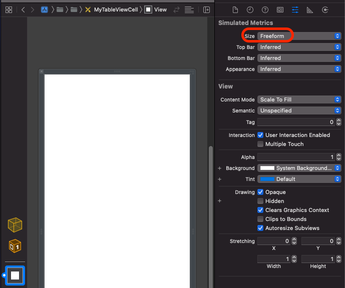 - MyTableViewCell.xib에 UI 컴포넌트 생성 (위치는 코드에서 layoutSubViews에서 계산할 것이므로 오토레이아웃 설정 x)