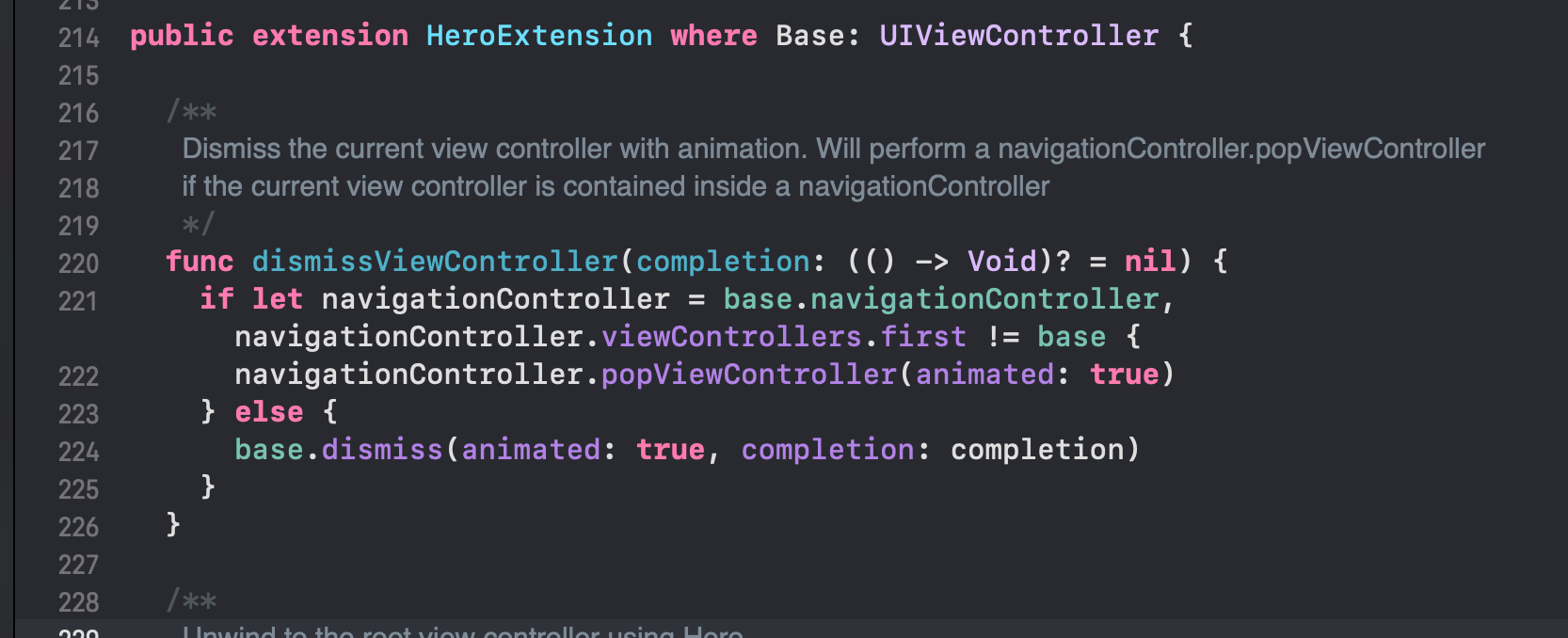 hero.dismissViewController(completion: nil)